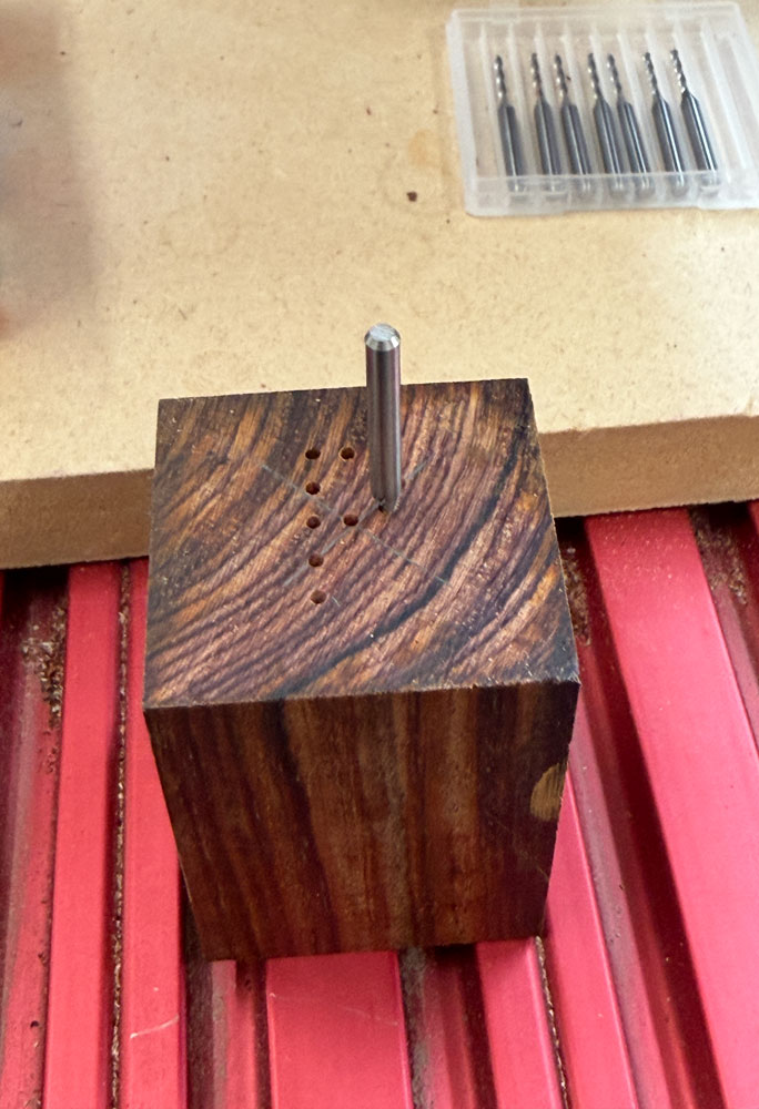 Here's the CNC drilling the holes.  The bit will drill 12mm deep, a bit over .47 inches.
