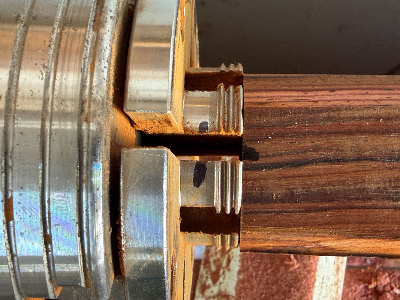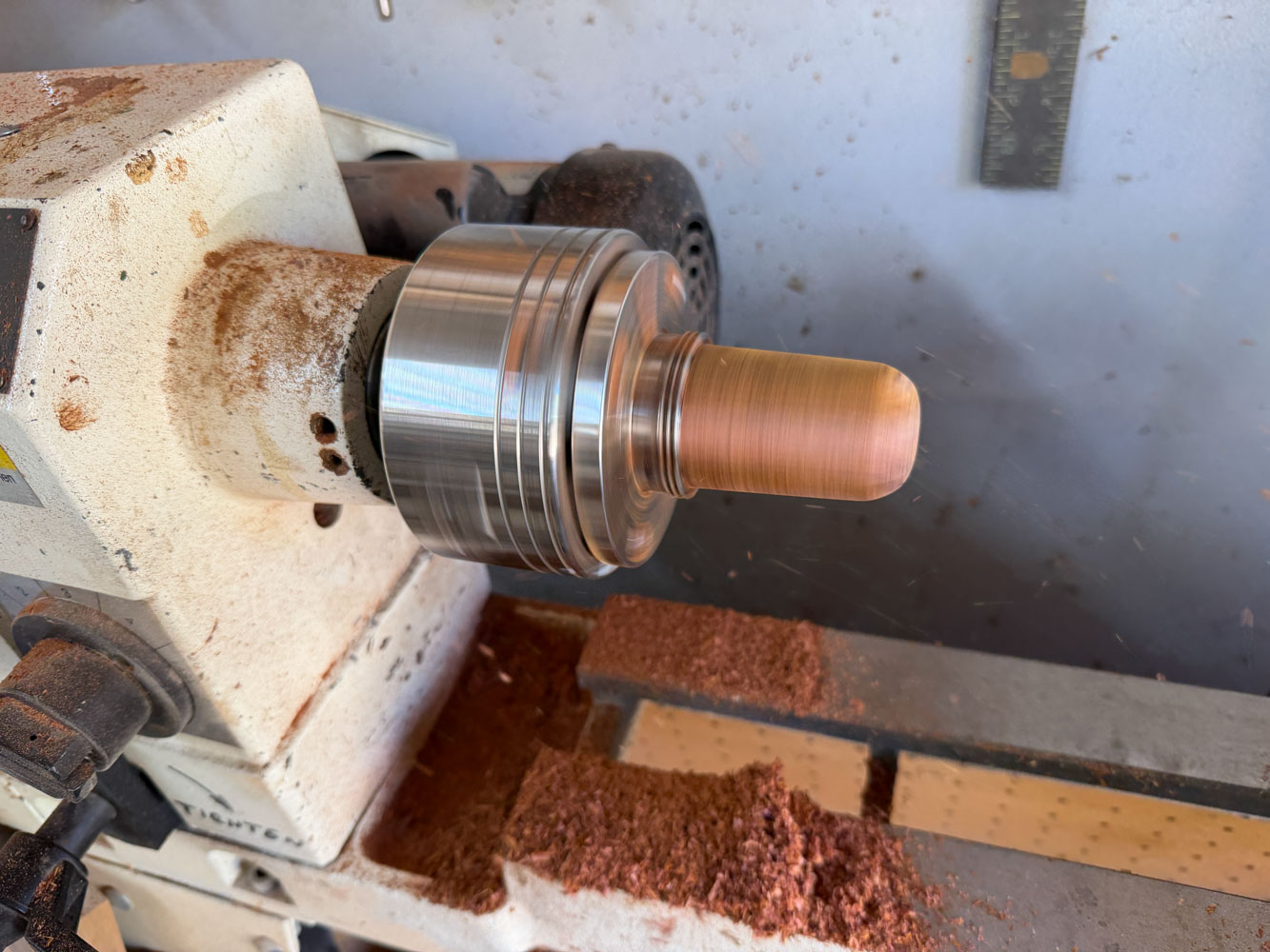 Then I used a couple of polishing wheels to polish the shakers.  I buffed them with Tripoli compound and then applied carnauba wax with a wheel.