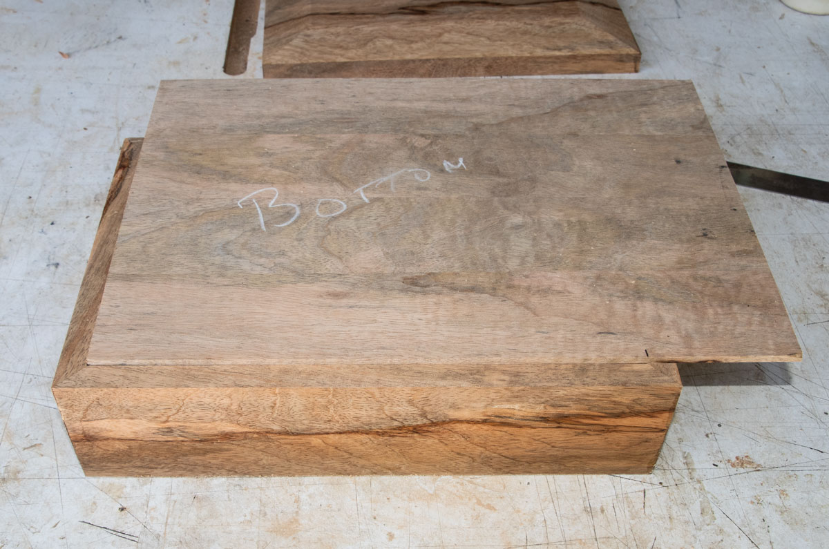 Be careful with the coarse sandpaper and don't take so much off that the sides are exposed on top. Here's the box with the bevels sanded.