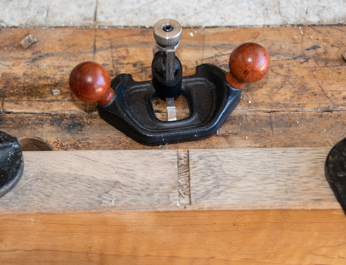 Then I stand the piece that will be the center on the center line and make a mark on each side - a very close mark. It's easier to fix a too narrow dado than a too wide one.