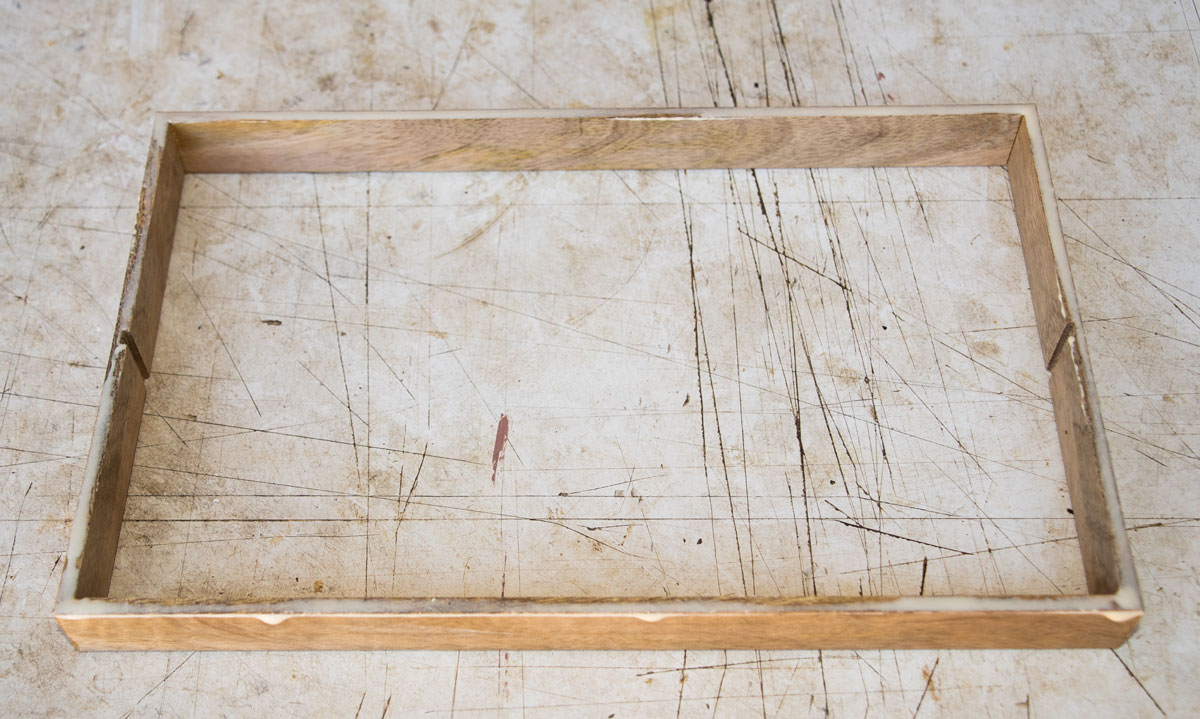 Now we have the four sides of the tray glued together. The next step is to glue the sides to the bottom. In this next picture I've applied glue to the bottom of the sides.