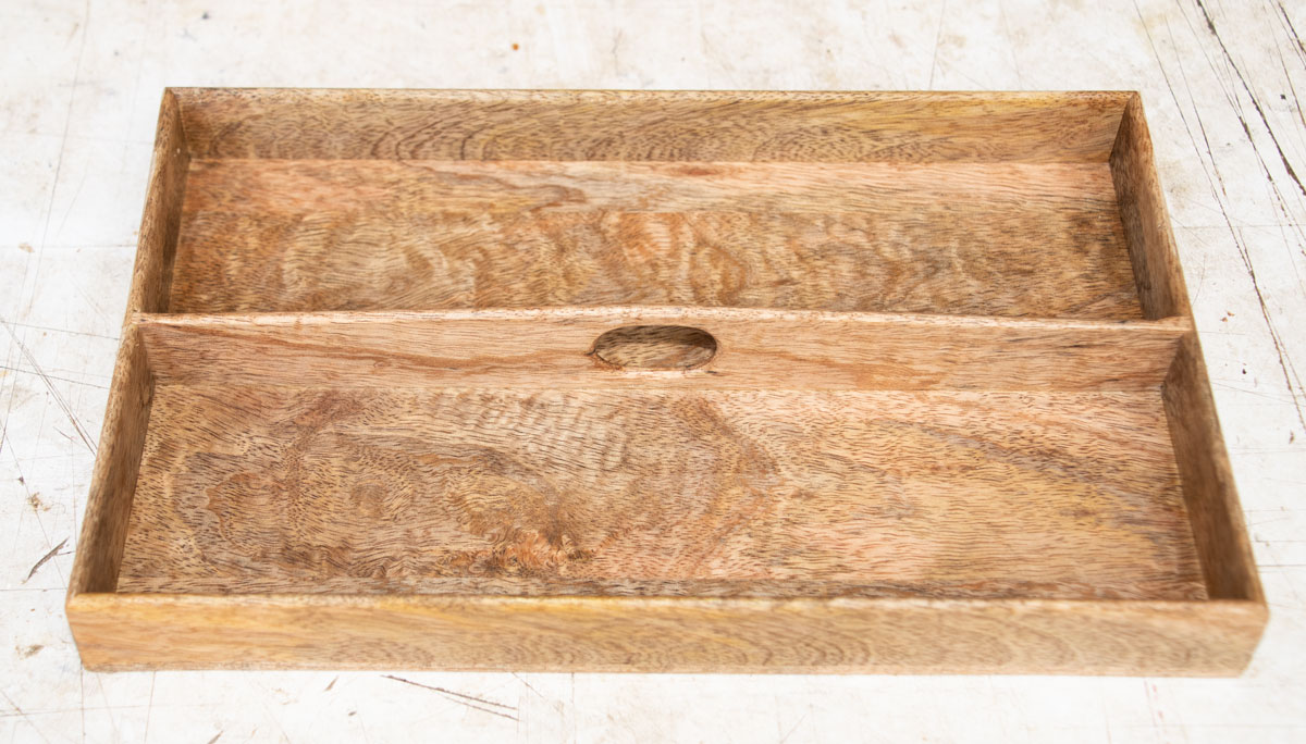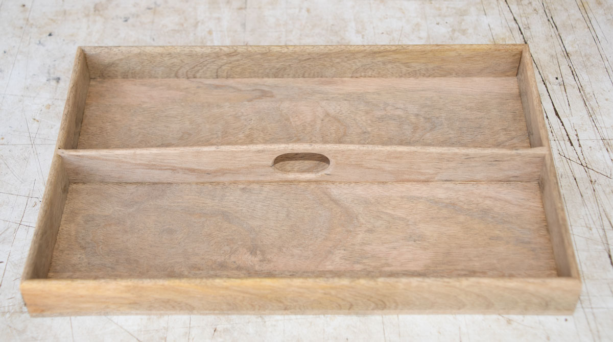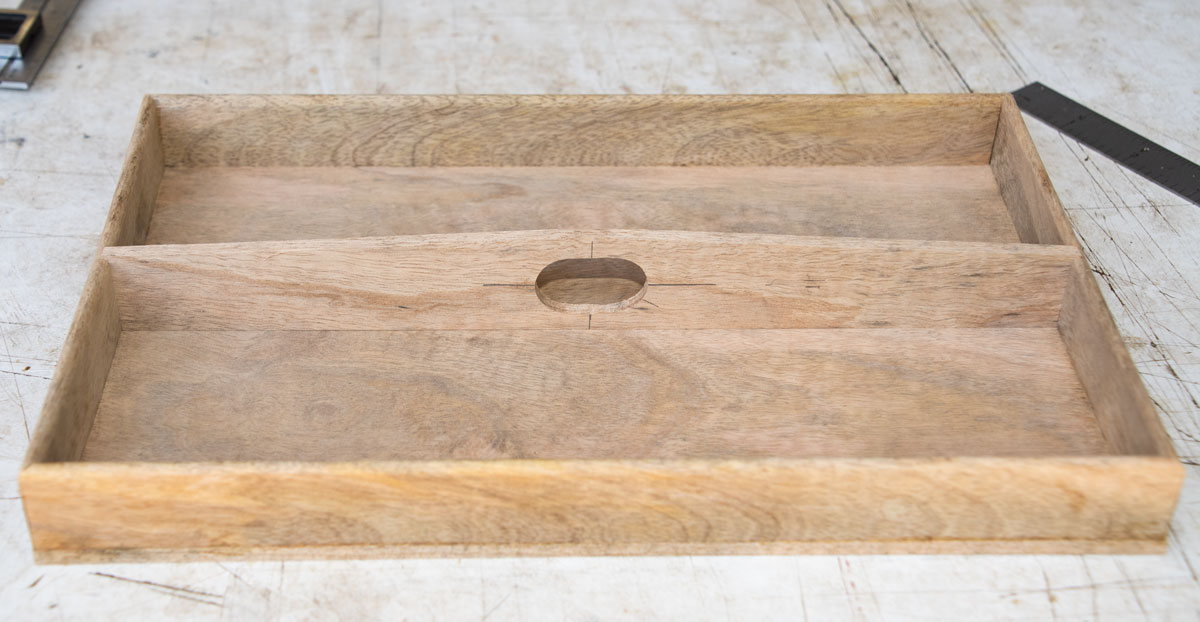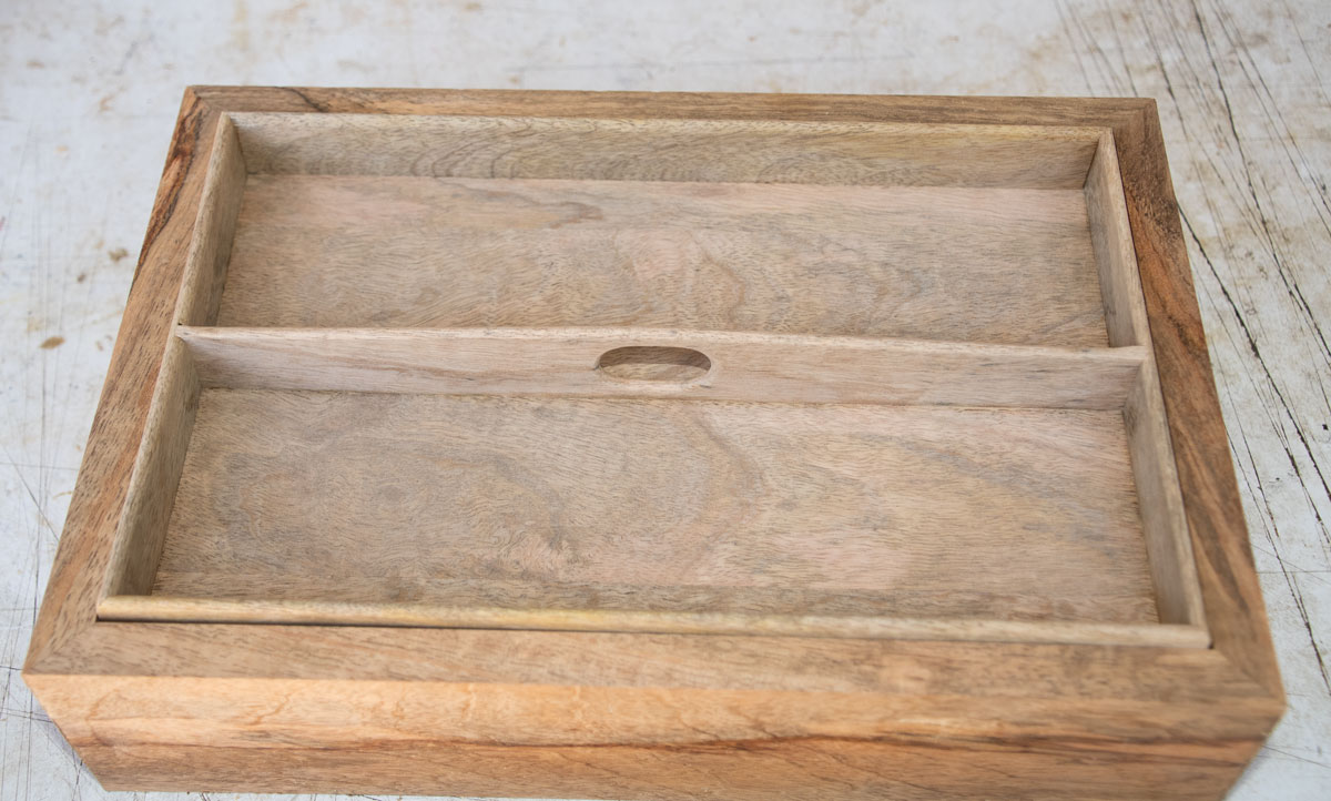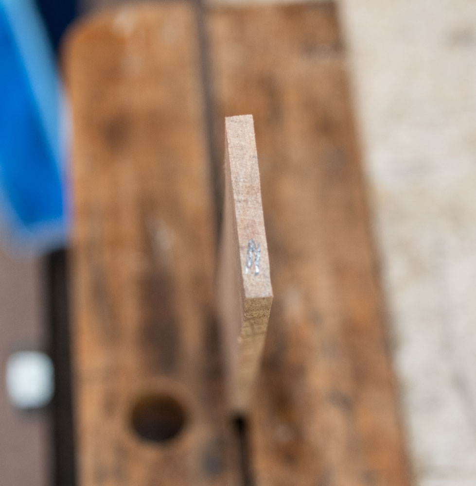 When you made the dados, they did not come out exactly the same width. How do I know? Because they were done by hand and that's what happens. So when you fit the center piece into the tray, you want to make sure you put it back in the same orientation. I put a pencil mark on one side of the center piece.