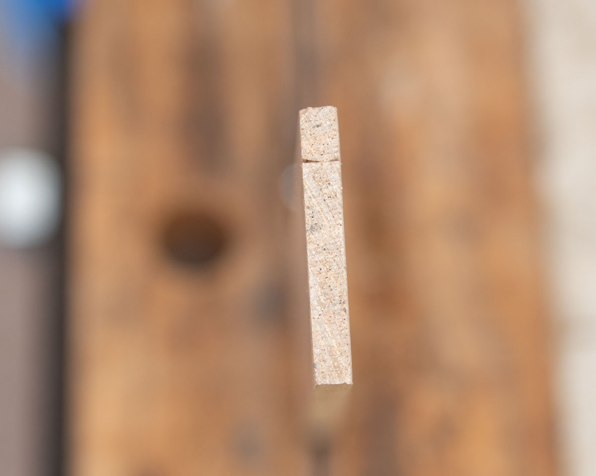 Now I have to round over the top of the center piece and the finger hole. The top is easy but the finger hole is a challenge. I roll up my sandpaper and stick it into the hole to round over the sides of the hole. You could wrap the sandpaper around a dowel, instead.