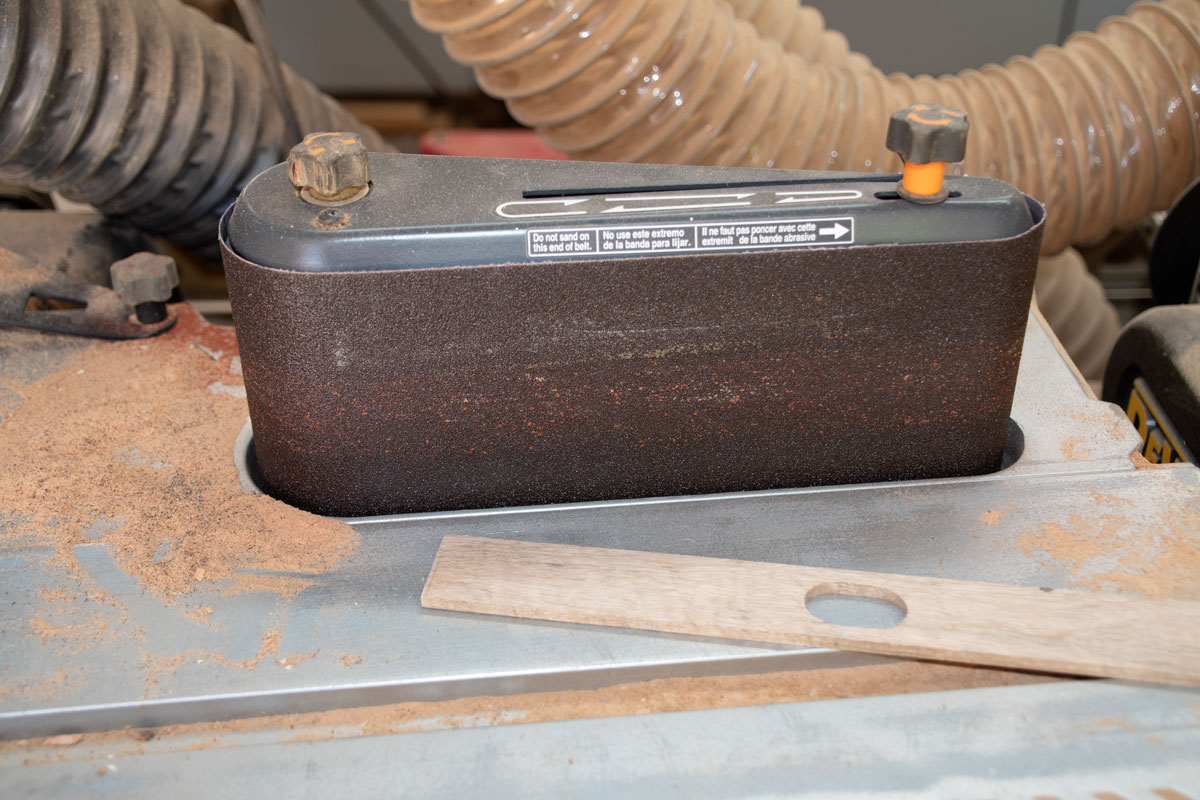 Then I take the center piece to the belt sander and sand a taper down to those marks.