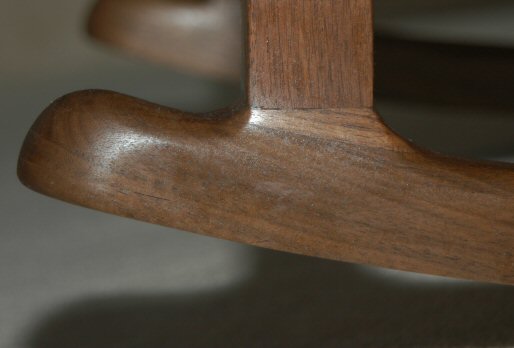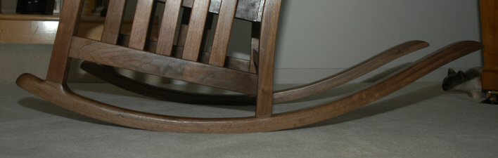 The rockers were lamination bent with a radius of about 39 inches. Note the reverse curve on the rear. Someone told me that the correct technical term is "skates" but I really don't like that name - so I call them rockers.