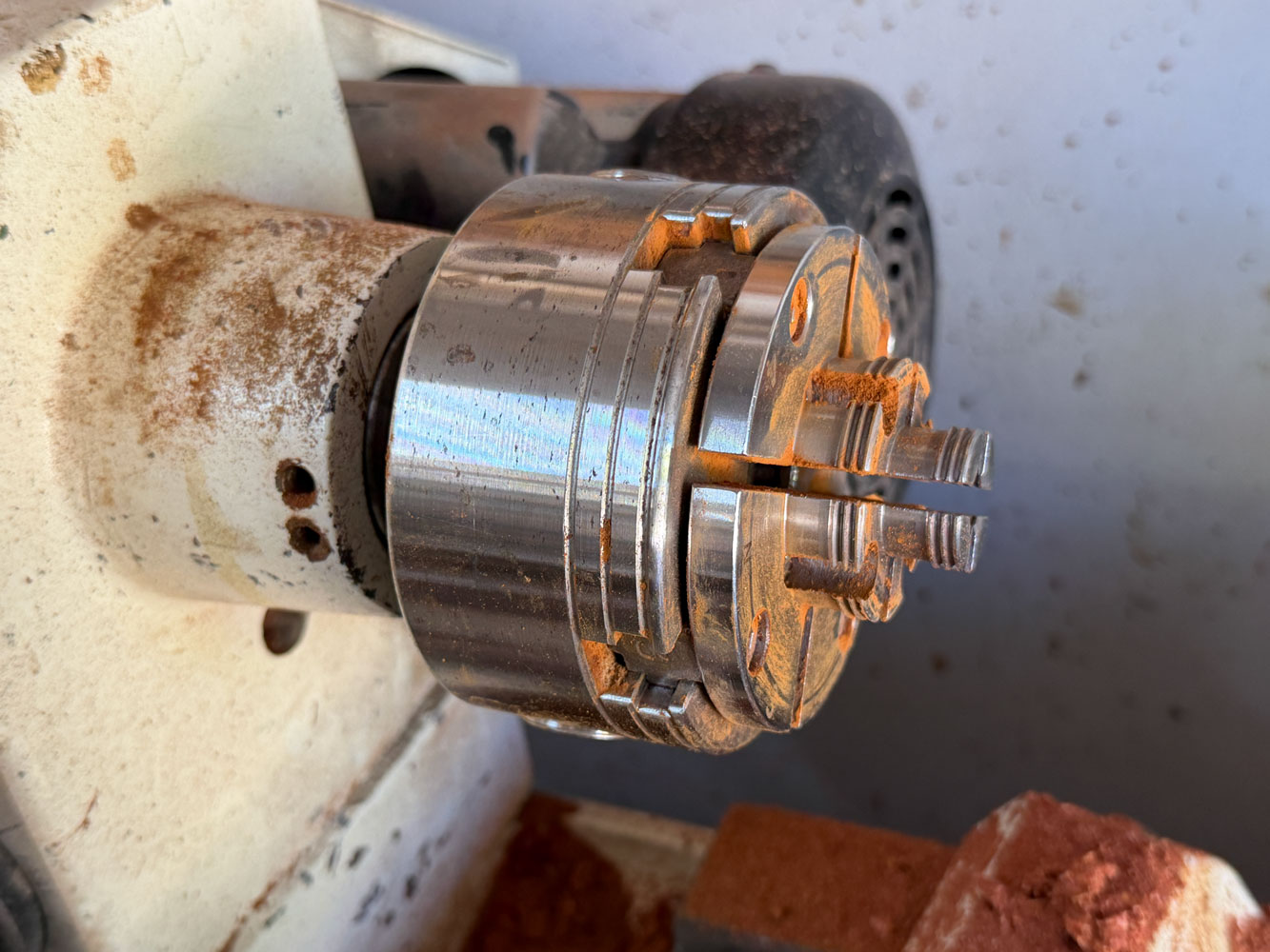 I use some different jaws to hold the blank.  The jaws go into the 1 inch hole and expand outward.