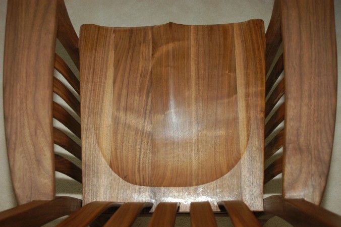 The seat is sculpted from quarter sawn walnut. Quarter sawn wood was used to minimize wood movement.