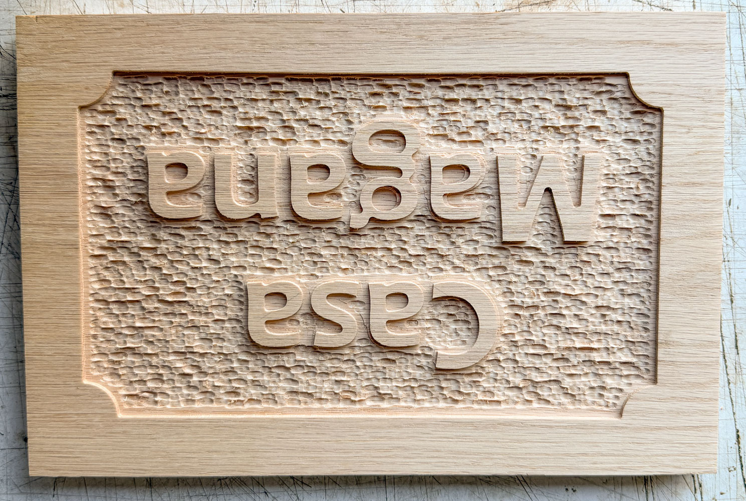 12/4/2025 Here's another sign I made for a friend. I was playing with texturing the background. There's a lot you can with the machine and I'm just beginning with it. I had to display this upside down because of the lighting. When I displayed it right side up, it looked like the background was raised.